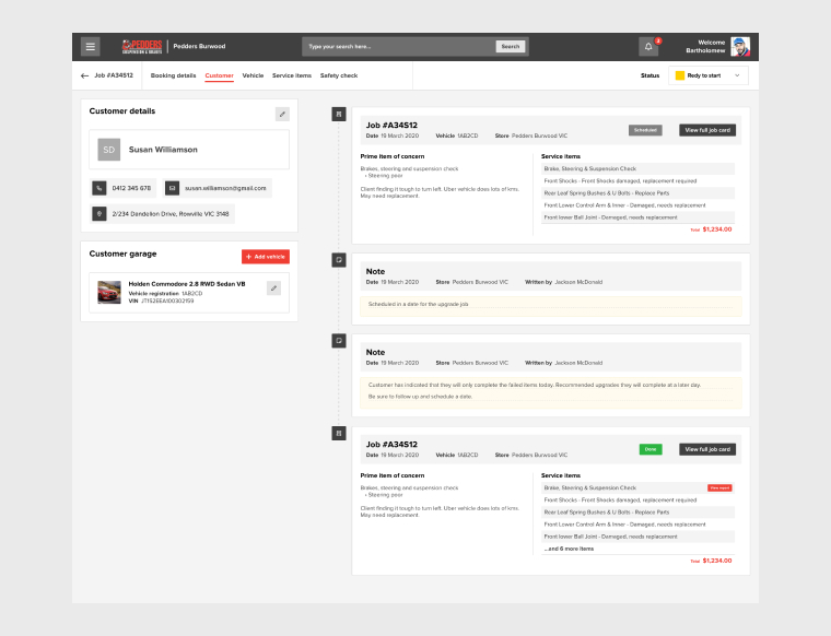 Accesso in tempo reale a inventario, dati cliente e storico del veicolo.